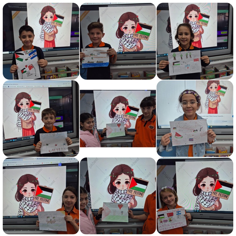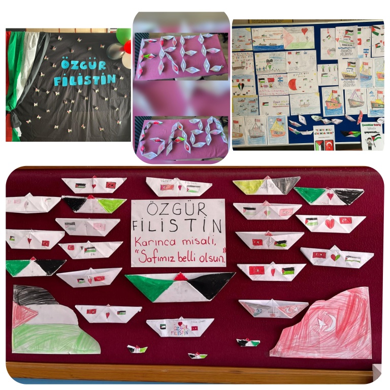 Öğrencilerimize "Filistin ve Gazze" hakkında bilgi kazandırmanın yanı sıra vicdanlı, adaletli ve insan olmanın sorumluluğunu öğretmek amacıyla okul genelinde bütün öğrencilerle beraber çeşitli etkinlikler yapıldı.İnsanın içindeki iyilik yeşermedikçe hiçbir bilgi meyve vermez. Amacımız insan haklarına saygılı "erdem -değer-eylem"anlayışına bağlı evrensel değerlere saygılı nesiller yetiştirmektir.